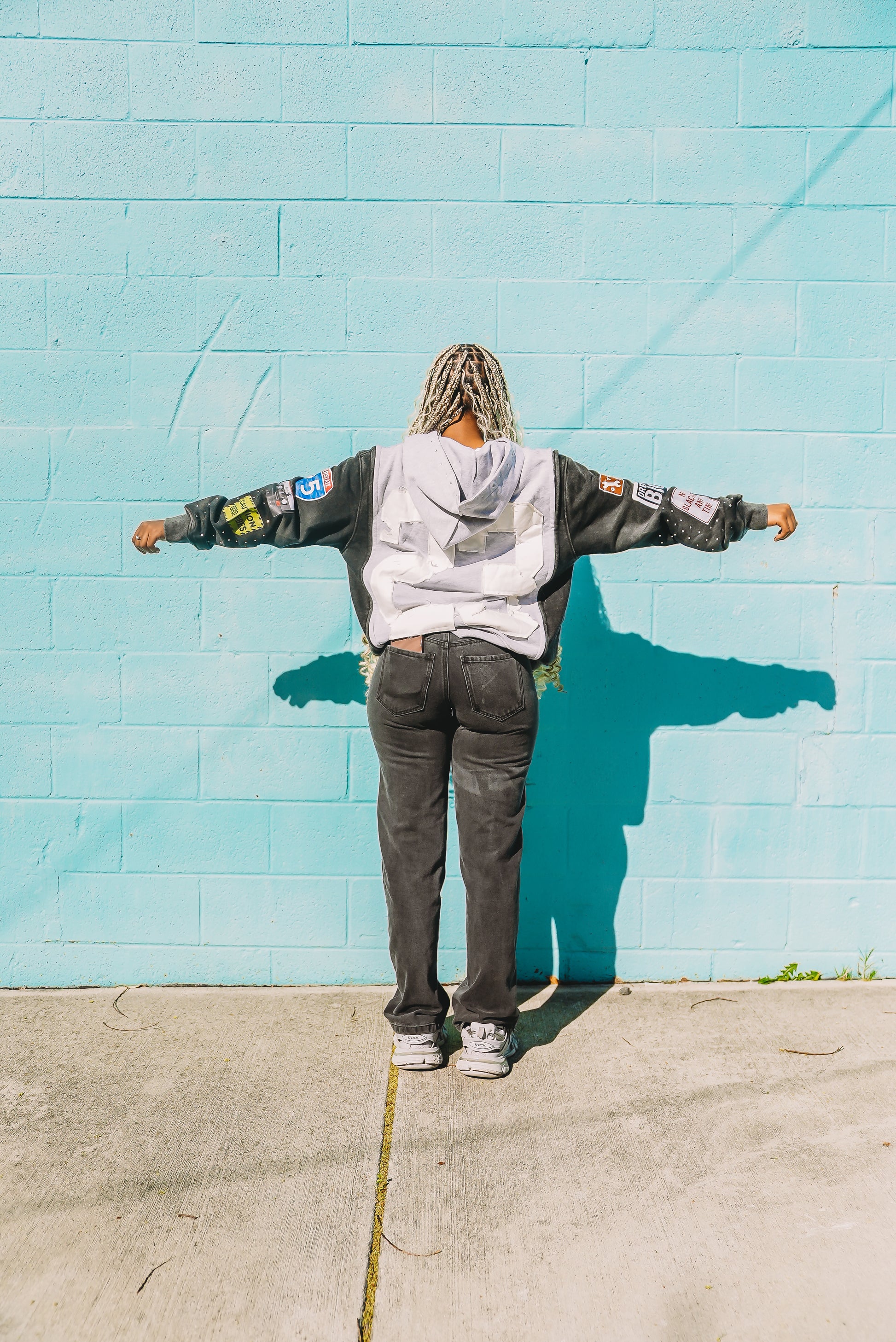This hoodie represents the journey to success, emphasizing motivation, resilience, and ambition. The license plate design on the front symbolizes being officially “licensed” to chase dreams and achieve greatness. The patches, featuring words like *Dream Big*, *No Slacking Any Time*, * Make it Work *, and *Caution: Good Vibes*, serve as reminders to stay focused, work hard, and maintain a positive mindset. The number 23 on the back signifies a meaningful year and personal milestone to the start of Johnae. Altogether, this piece embodies the idea that success is a road traveled with determination, self-belief, and perseverance.